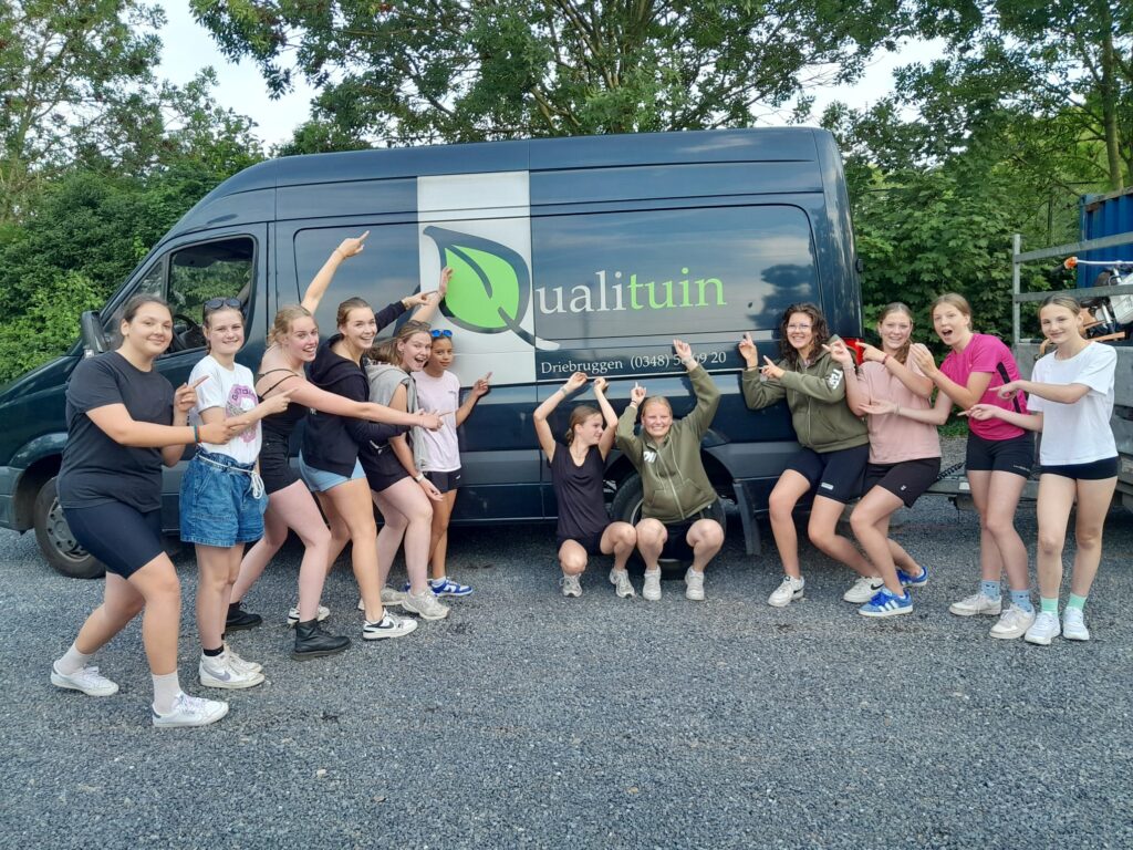 De Ysselrakkers en Dijkratten 1 verzamelde op het rijpad. Altijd spannend als de leiding komt want die komen altijd verkleed in de stijl van het thema. Wat zullen de thema’s dit jaar zijn?