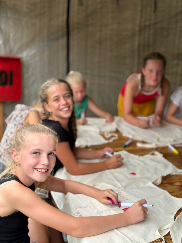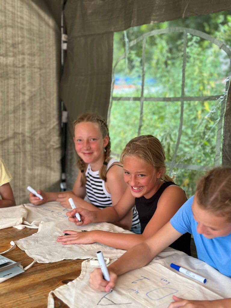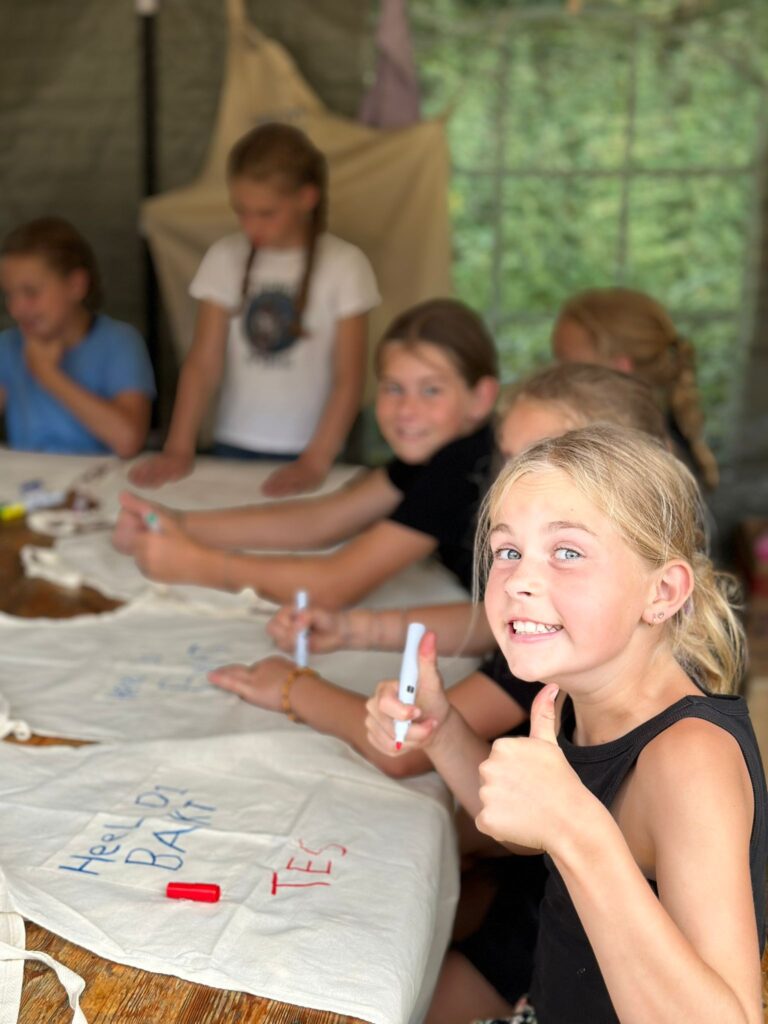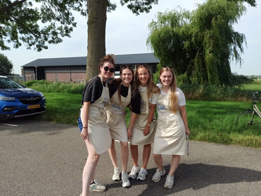 Bij de Dijkratten 1 gaan ze de hele week bakken. Zo hebben ze allemaal een schort gehad en versiert vananvond. Ziet er leuk uit meiden!