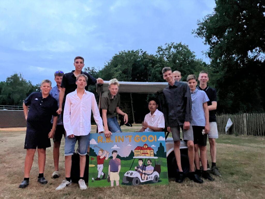 Ja mannen kleden jullie je maar even om want als het goed is zit er een nette blouse in jullie koffer. Jullie zitten namelijk de hele week in het Gooi. Er is zelfs een golfkar aanwezig!